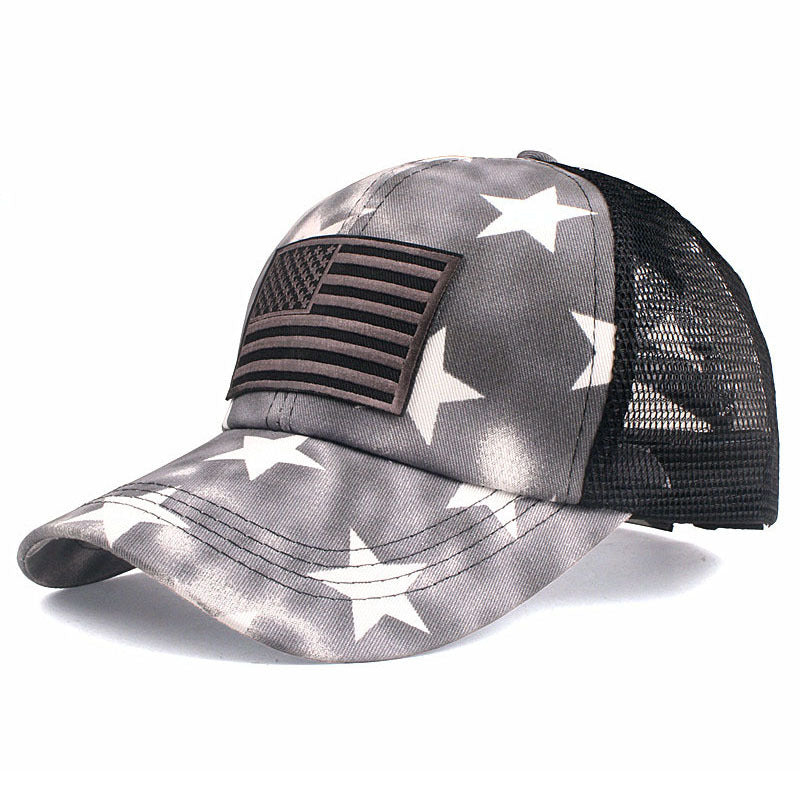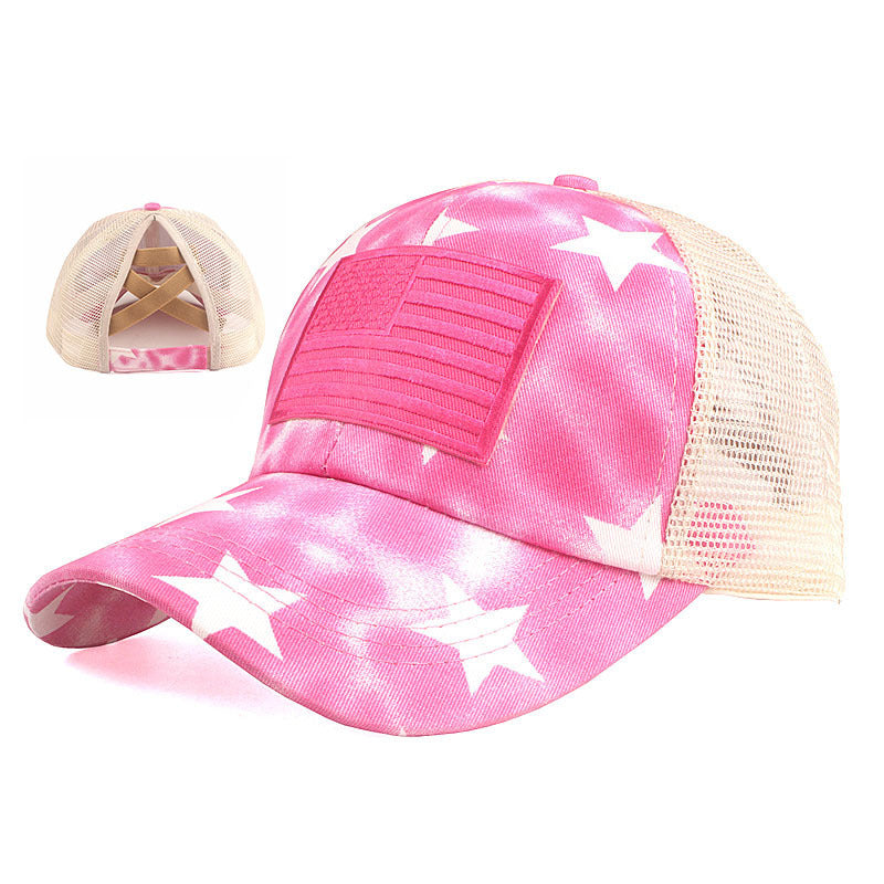 Flag embroidery tie-dye ponytail casual baseball cap