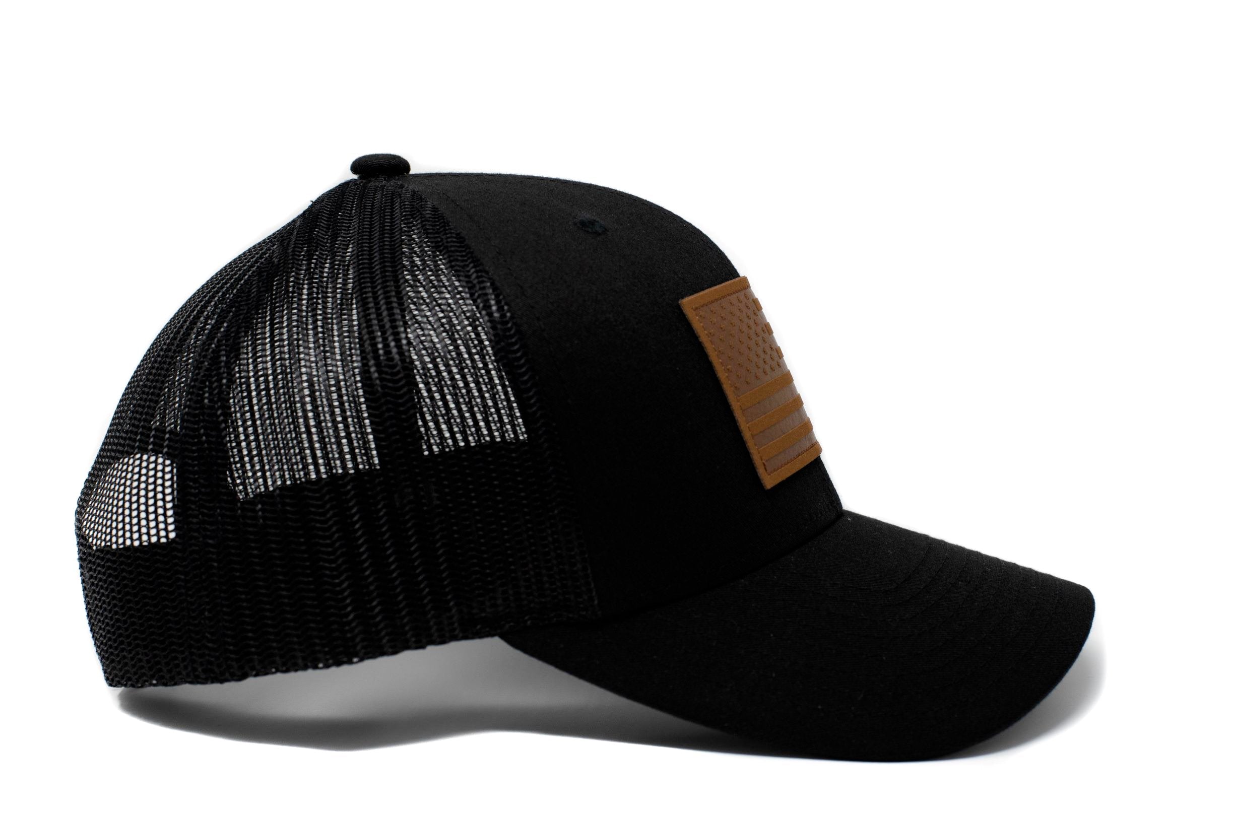 The American Flag Trucker Hat is our best selling hat. The black hat and brown leather patch creates a clean look that is stylish and still tactical. This patriotic hat is great for multiple occasions. Pride in country is always in style.