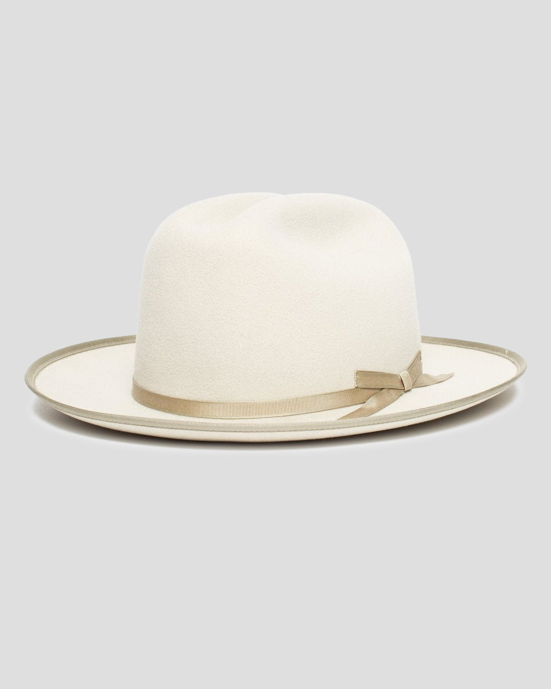 A premium Merino wool felt with a cattleman crease, tonal grosgrain trimming, and a genuine leather sweatband. Made in America, worn around the world.
