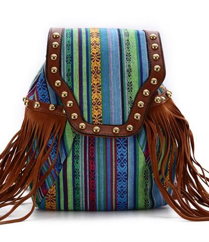 Ladies ethnic cloth bag casual fashion tassel backpack