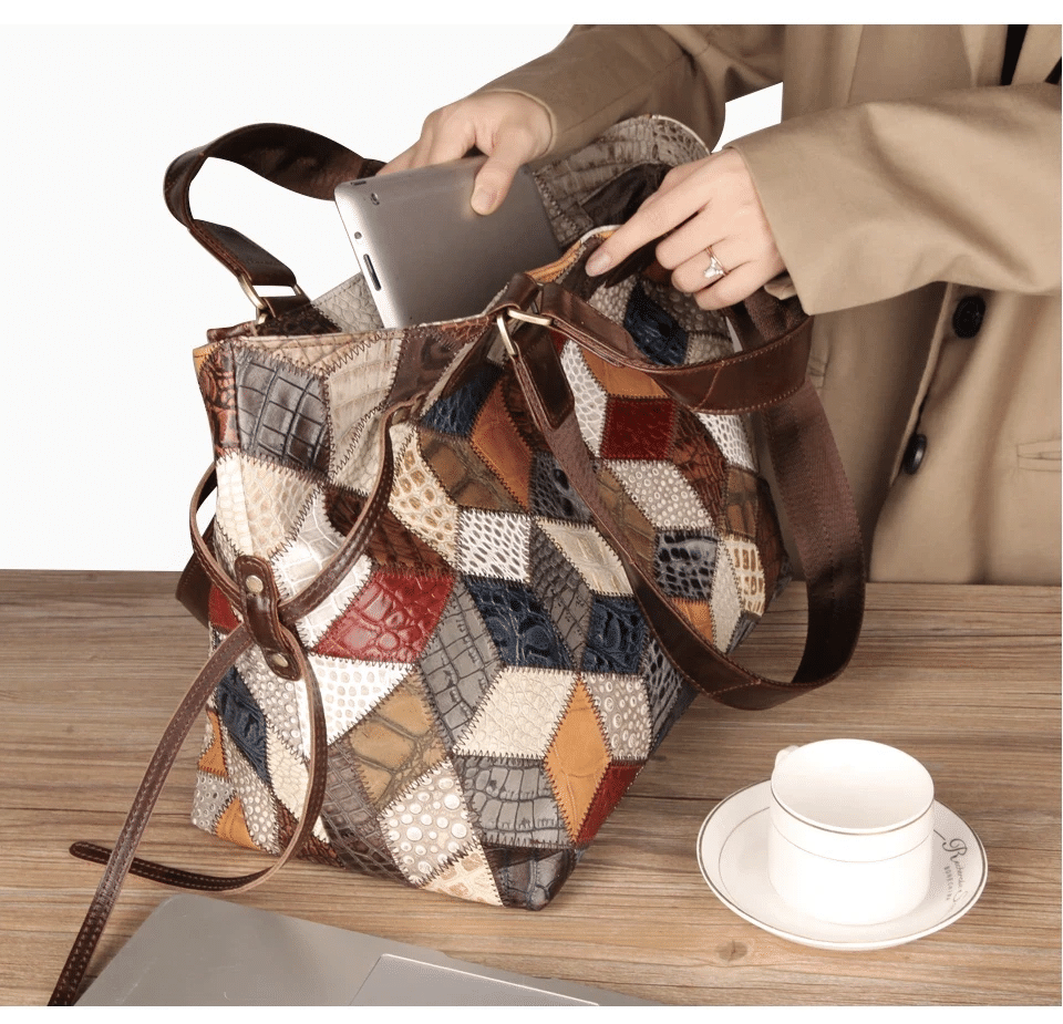 Turn heads with our Large Geometrical Pattern Leather Tote and order yours today!