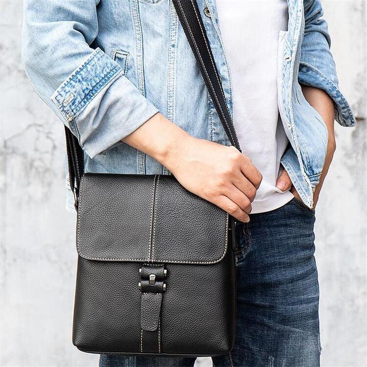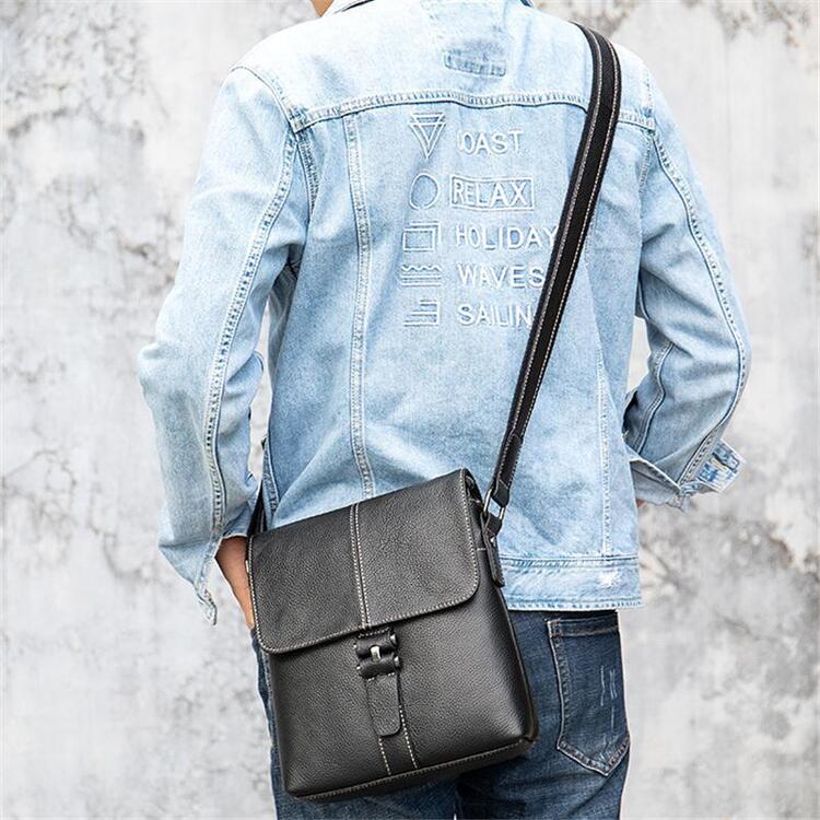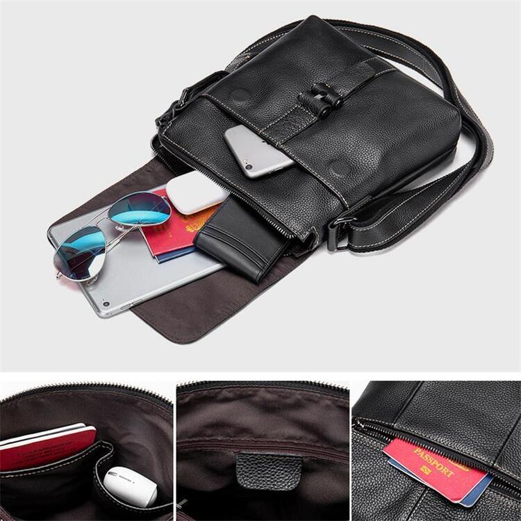 Leather Solid Color Business Crossbody Bag Shoulder Bag For Men