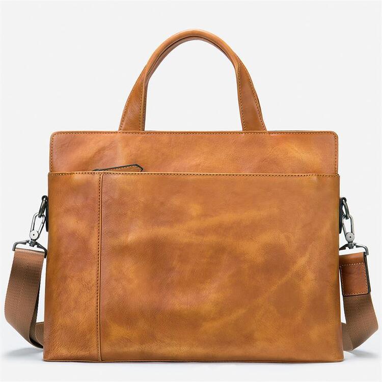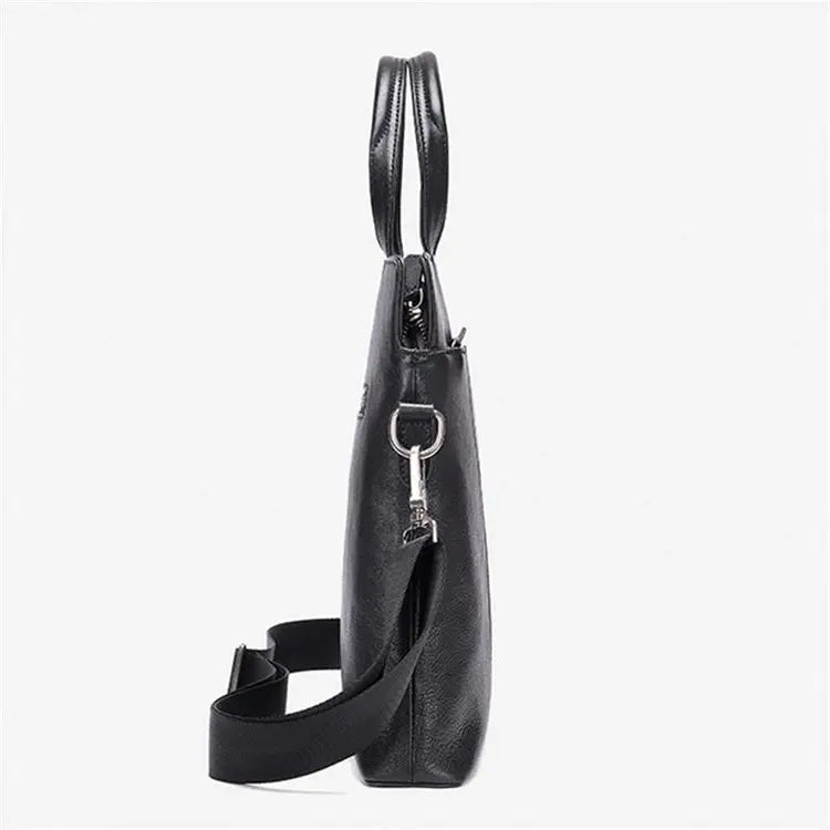 Men's Genuine Leather Casual Business Handbag Solid Color Crossbody Bag