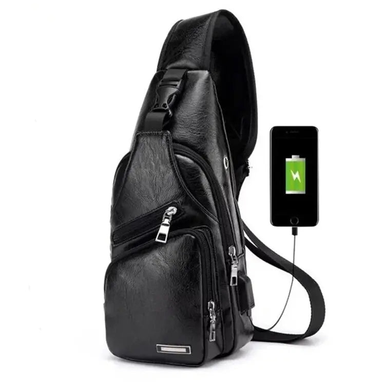 Men’s Outdoor Resistant Anti Theft Chest Bag Sling Bag With Headphone Jack And USB Charging Port
