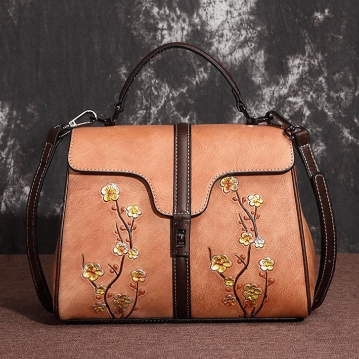 Adorn your fashion look with our Full Cherry Blossom Embossed Leather Bag and order yours today!