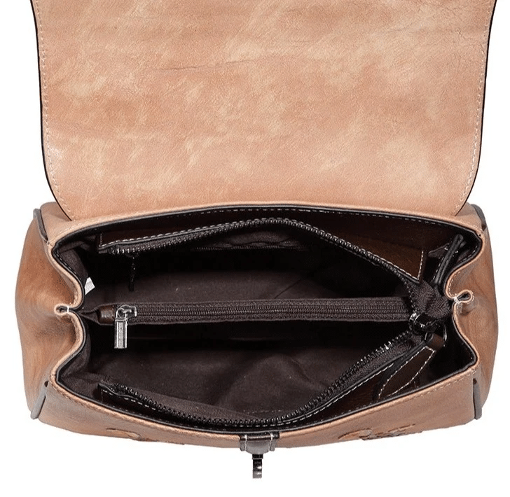 • Strengthened hardware buckles and thick handles that add durability to the handbag