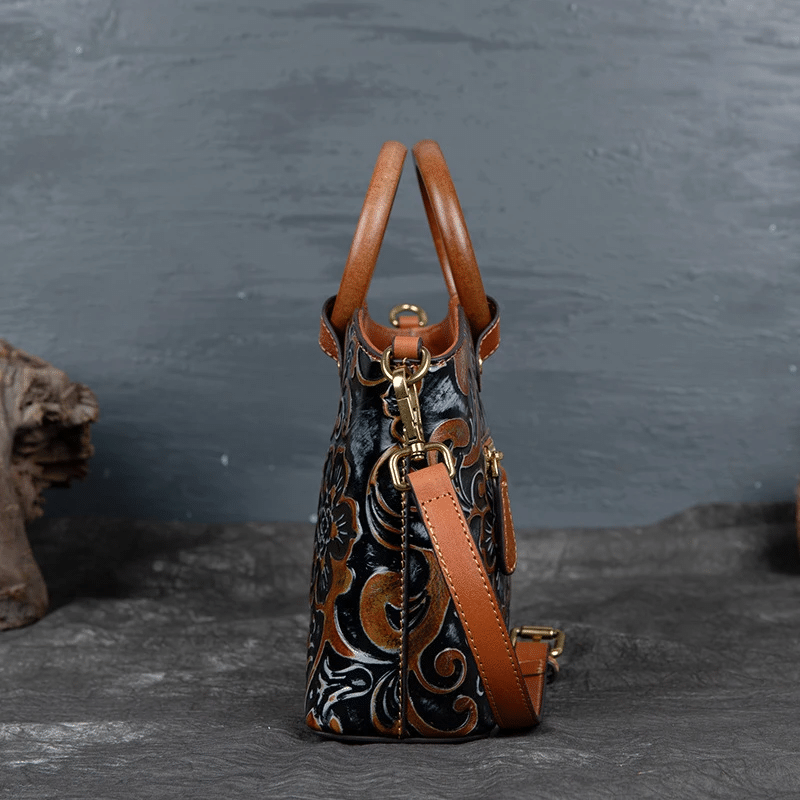 Dress to impress with the Genuine Leather Vintage Embossed Handbag and order yours today!